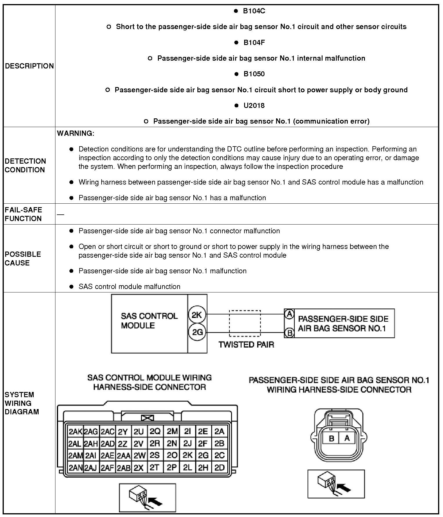 DTC B104C, B104F, B1050, U2018 [STANDARD DEPLOYMENT CONTROL SYSTEM]
