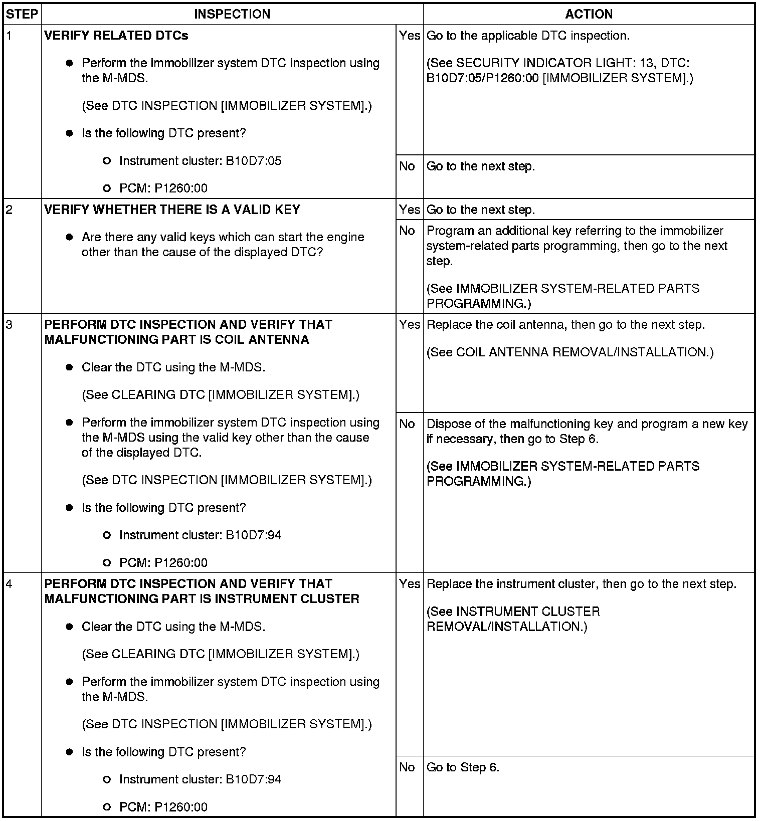 SECURITY INDICATOR LIGHT: 13, DTC: B10D7:94 / P1260:00 [IMMOBILIZER SYSTEM]