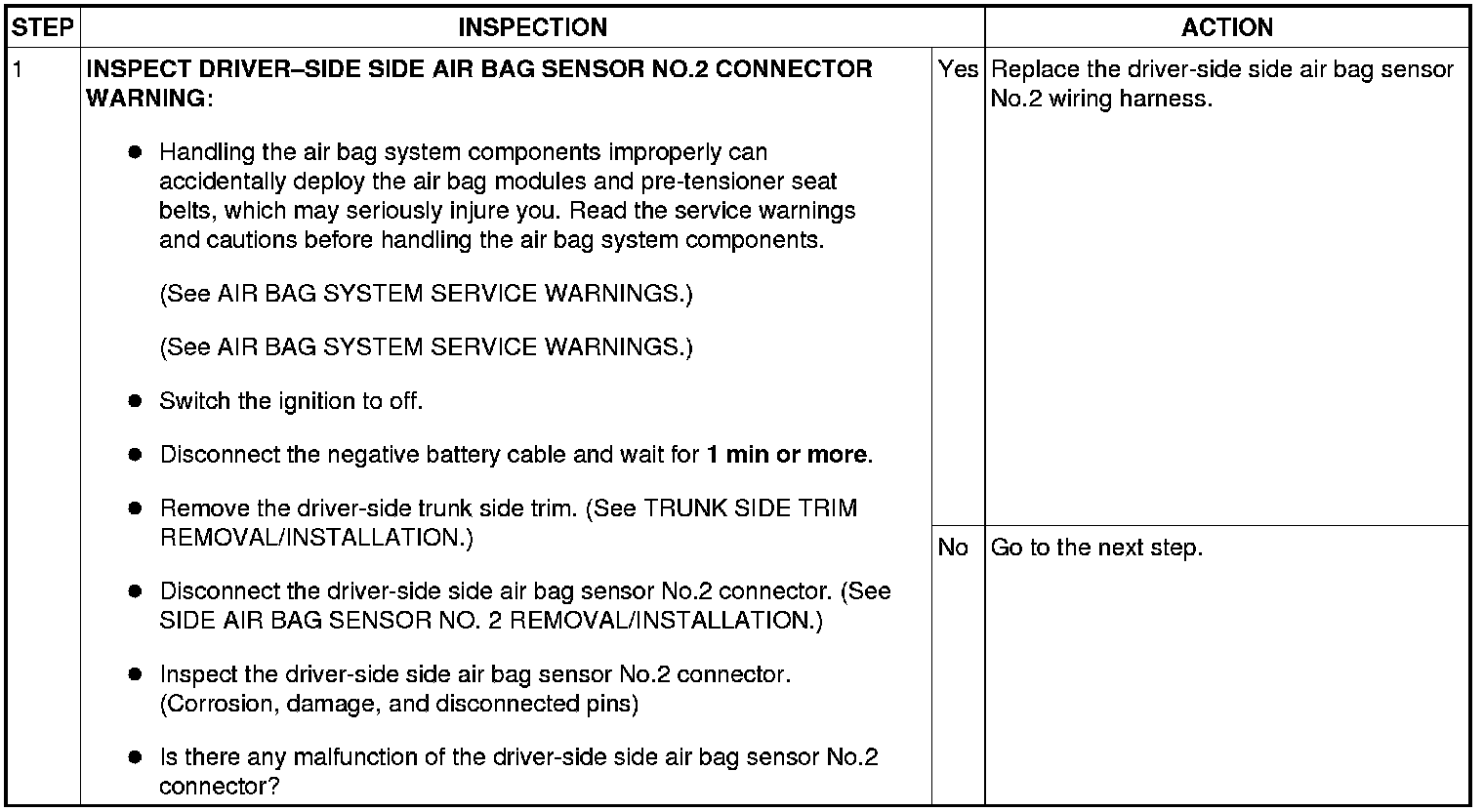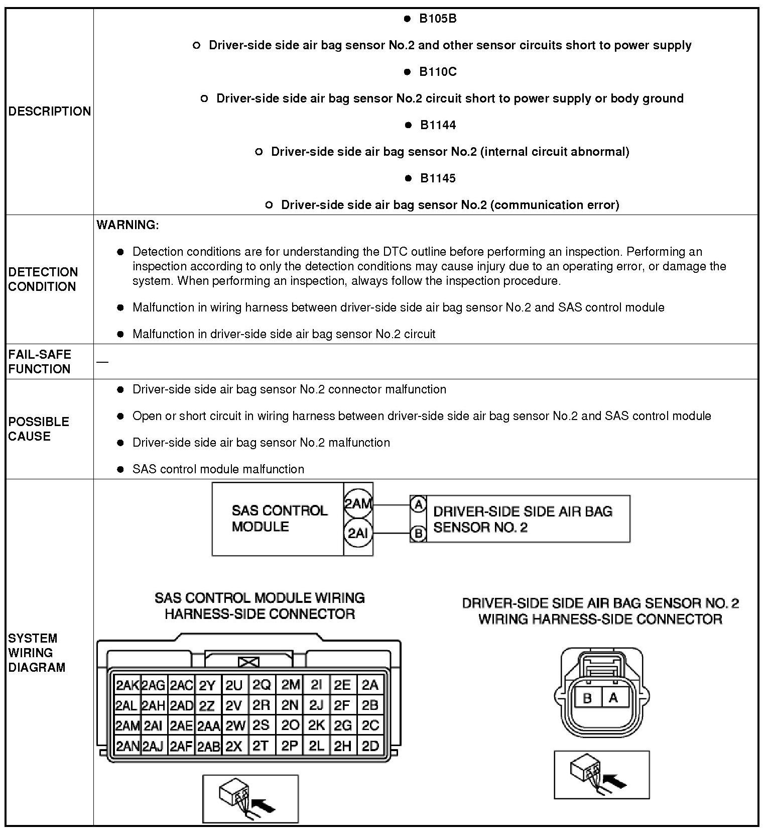 DTC B105B, B110C, B1144, B1145 [TWO-STEP DEPLOYMENT CONTROL SYSTEM]