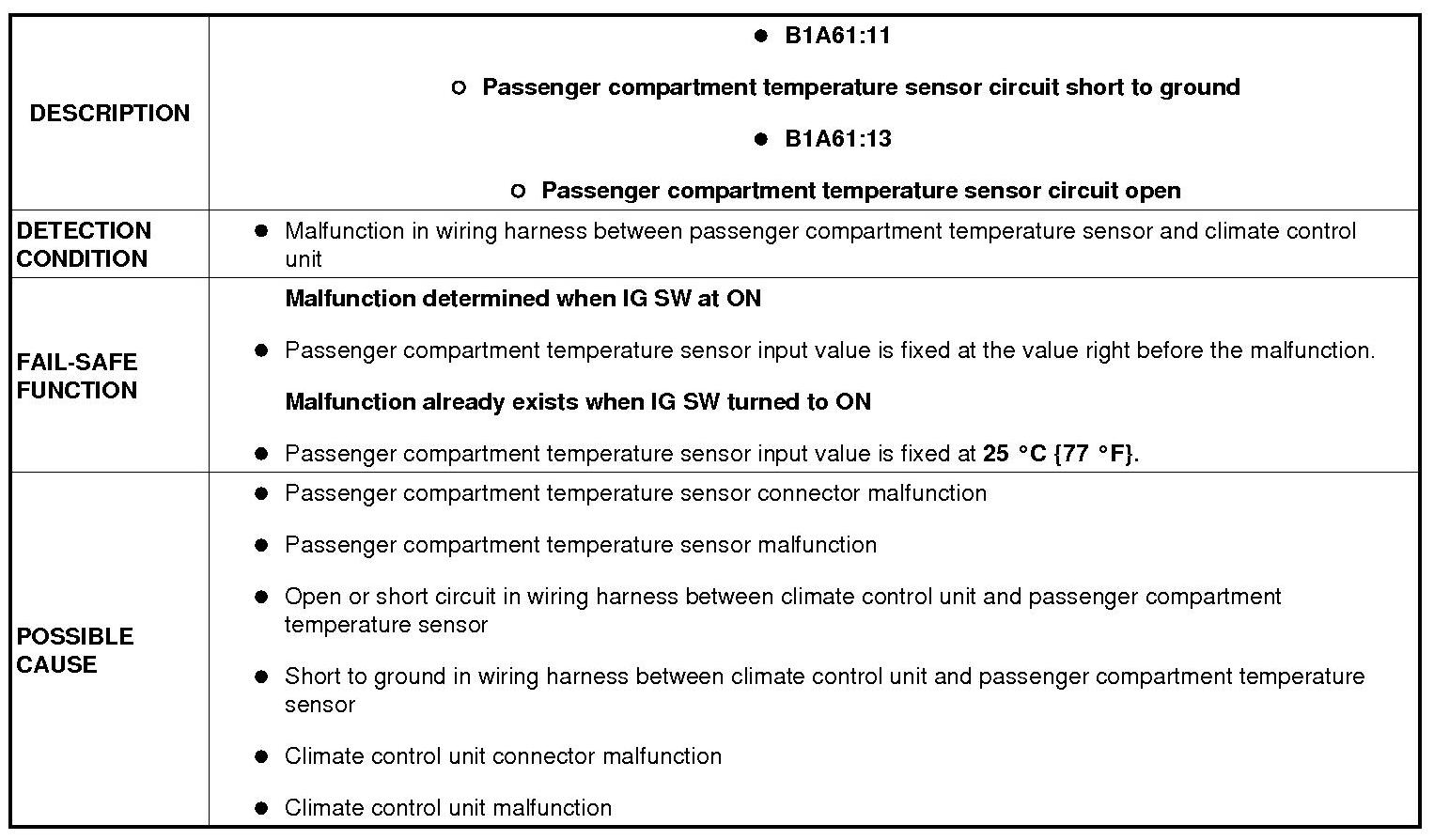 DTC B1A61:11, B1A61:13 [FULL-AUTO AIR CONDITIONER]