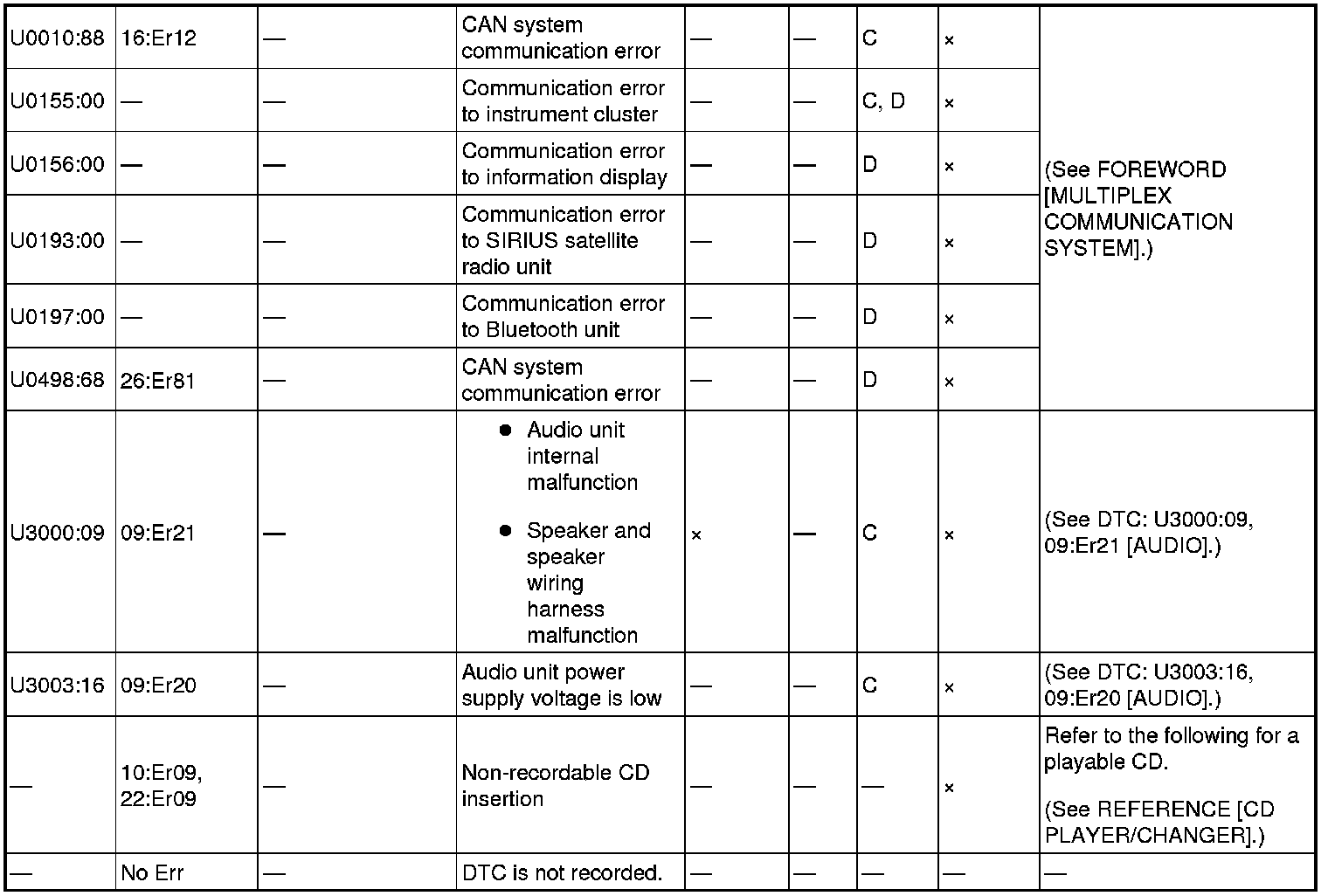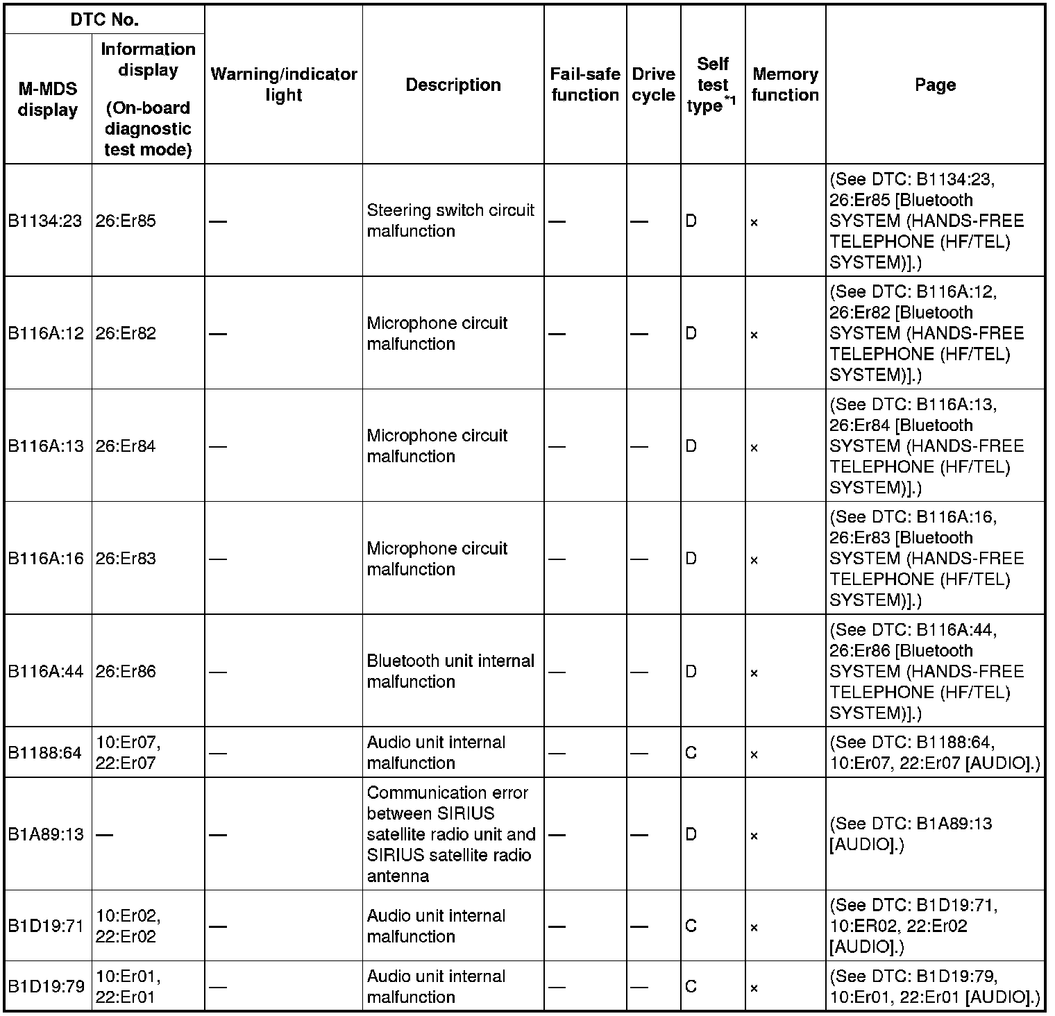 DTC TABLE [AUDIO]