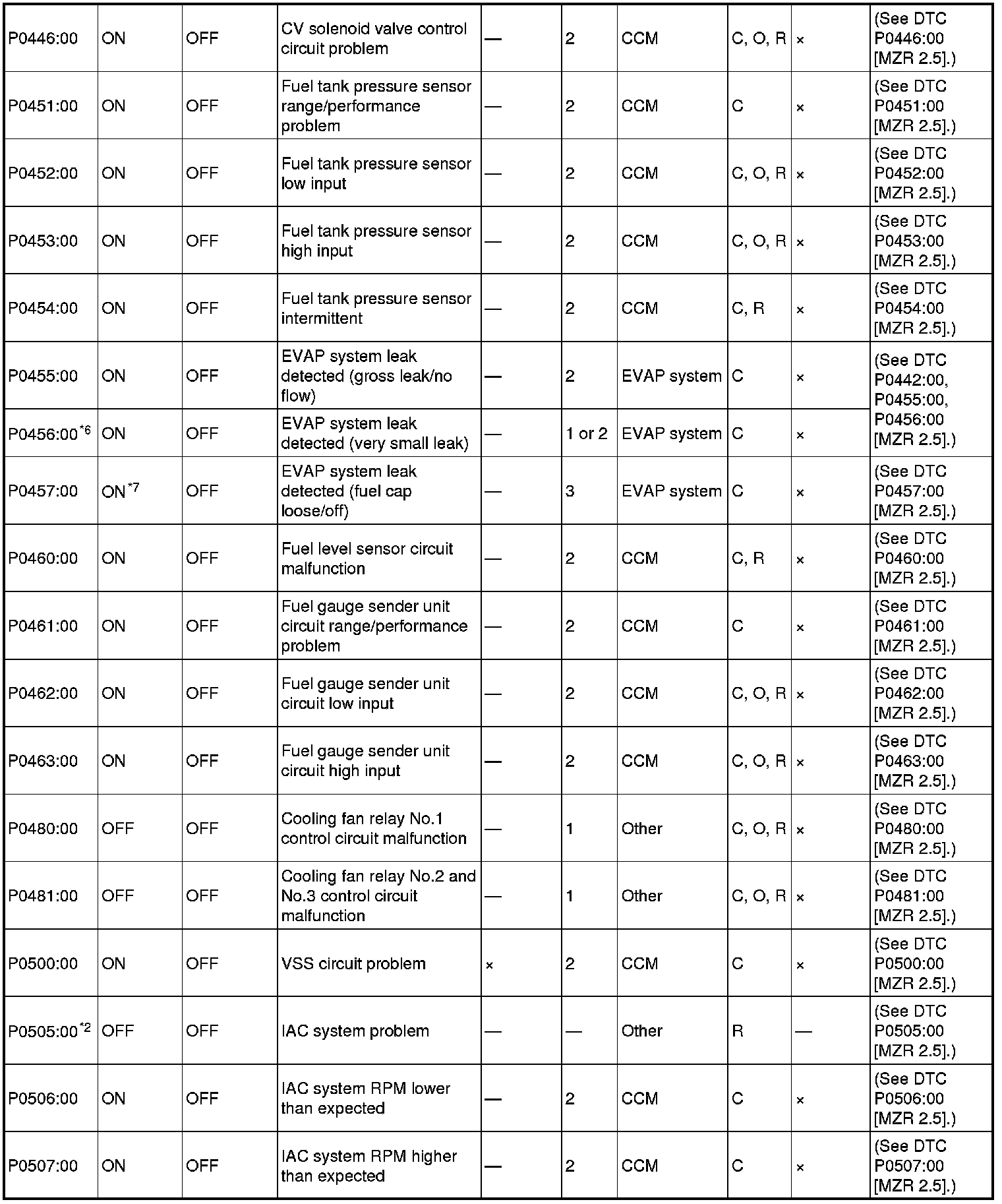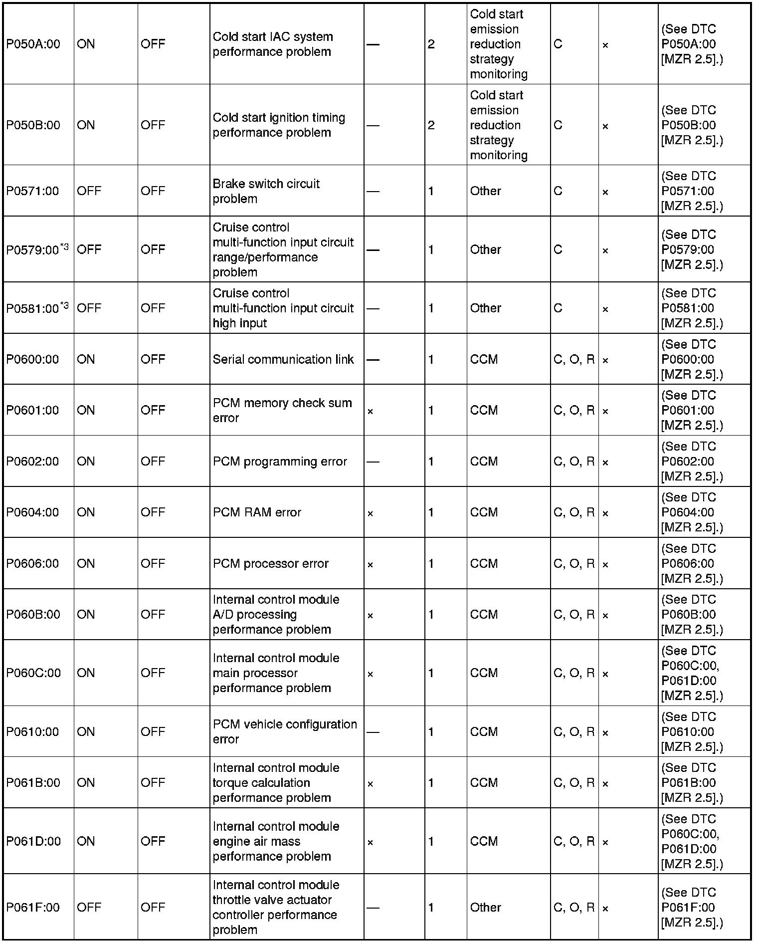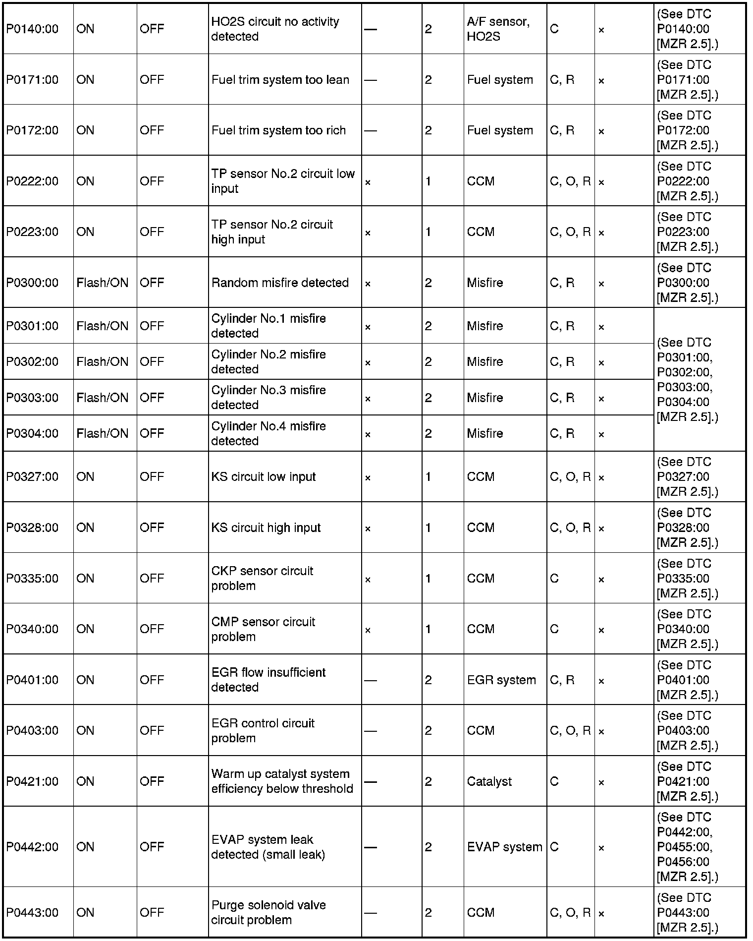 C: CMDTC self test, O: KOEO self test, R: KOER self test