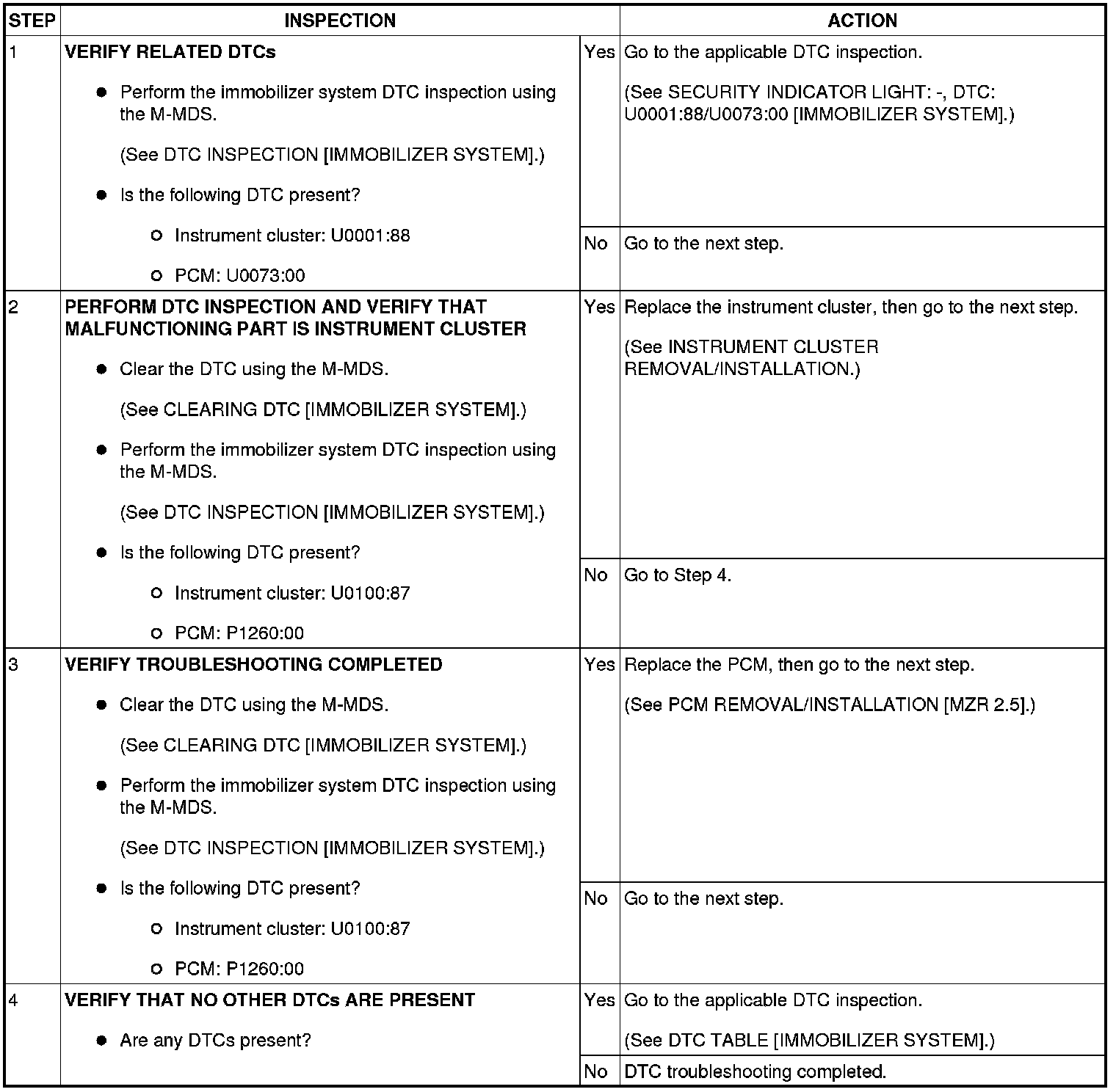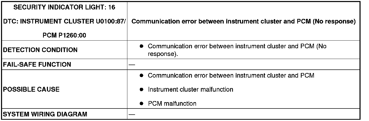 SECURITY INDICATOR LIGHT: 16, DTC: U0100:87 / P1260:00 [IMMOBILIZER SYSTEM]
