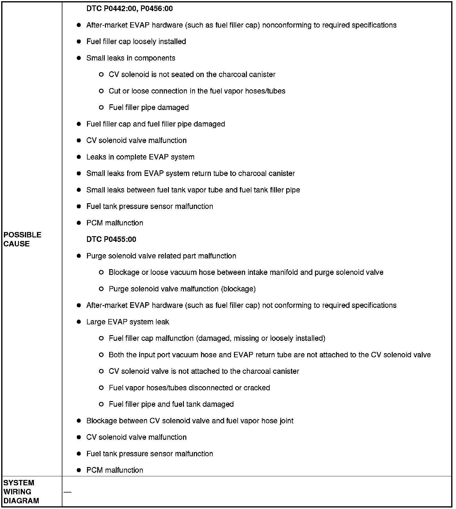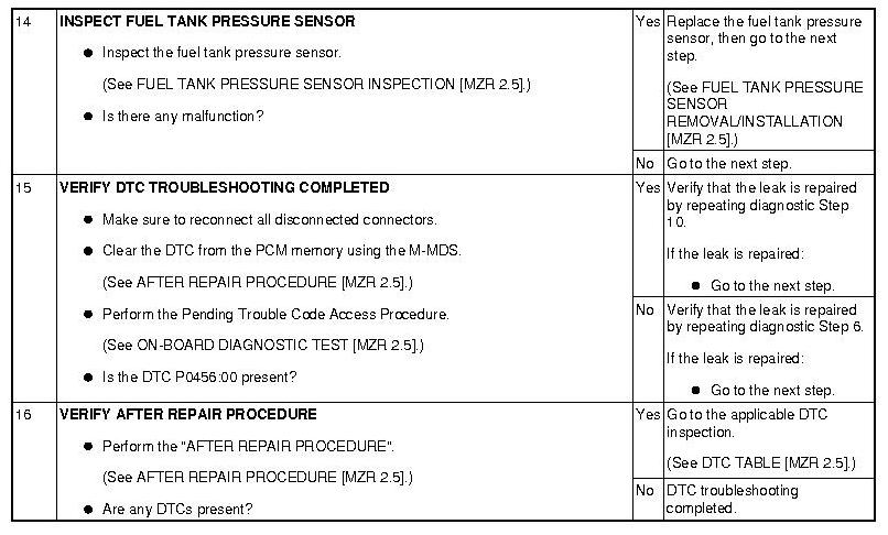 DTC P0442:00, P0455:00, P0456:00 [MZR 2.5]