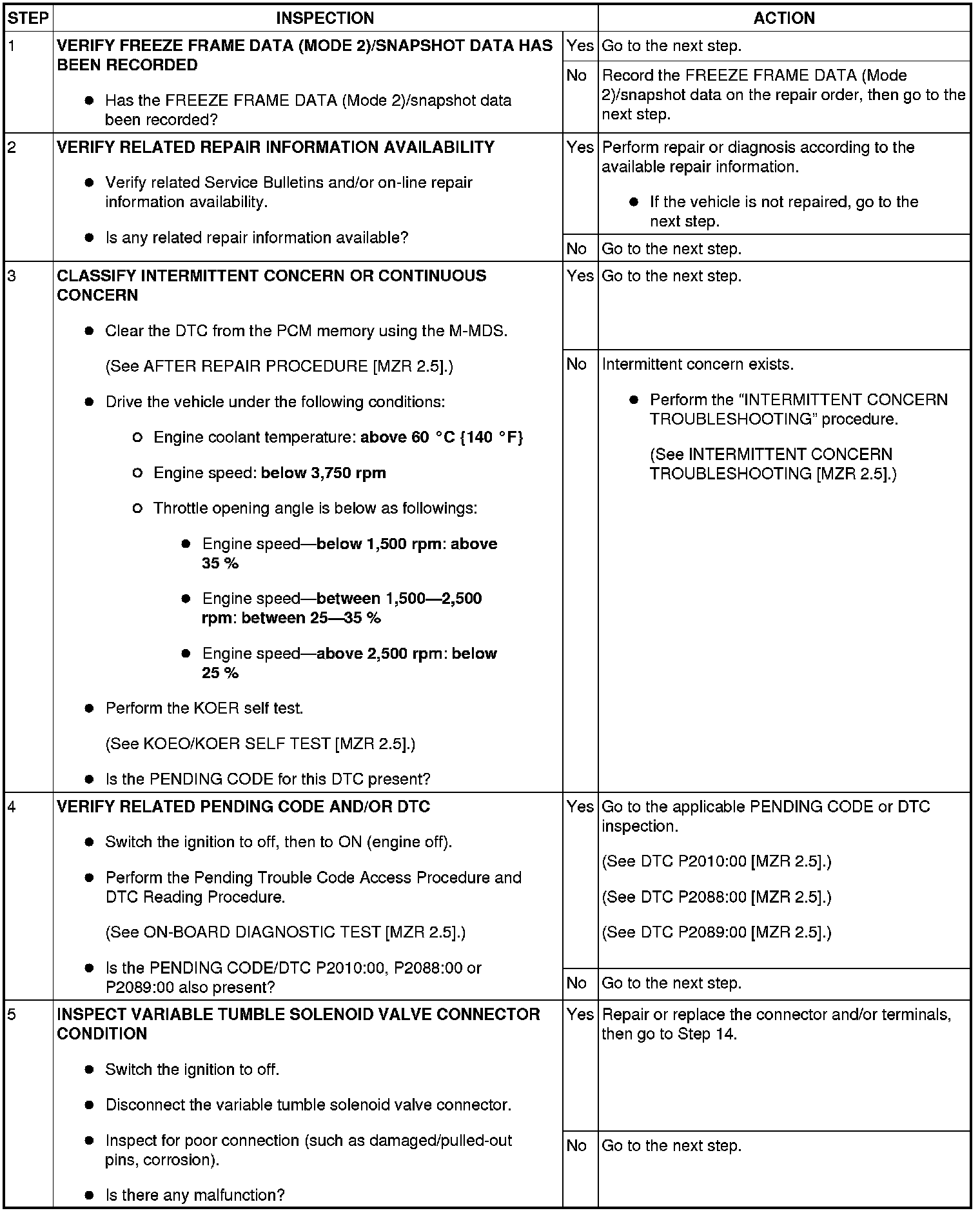 DTC P2004:00 [MZR 2.5]