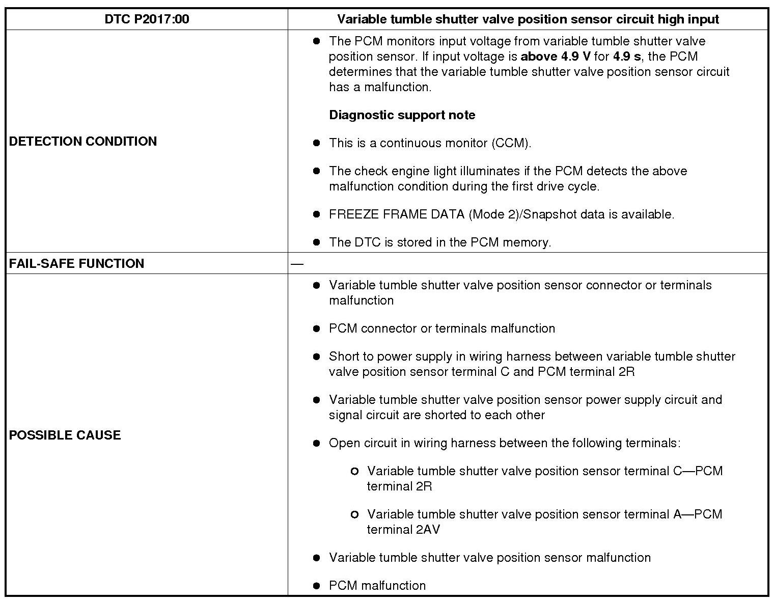 DTC P2017:00 [MZR 2.5]