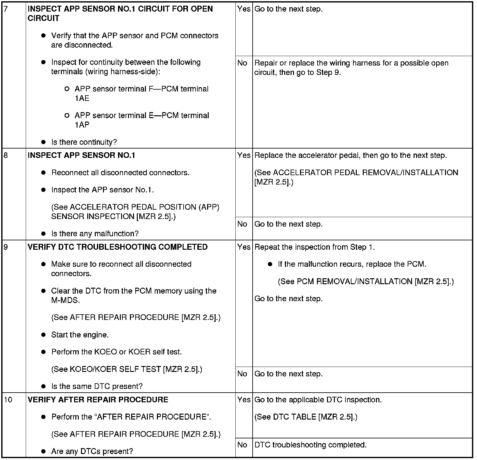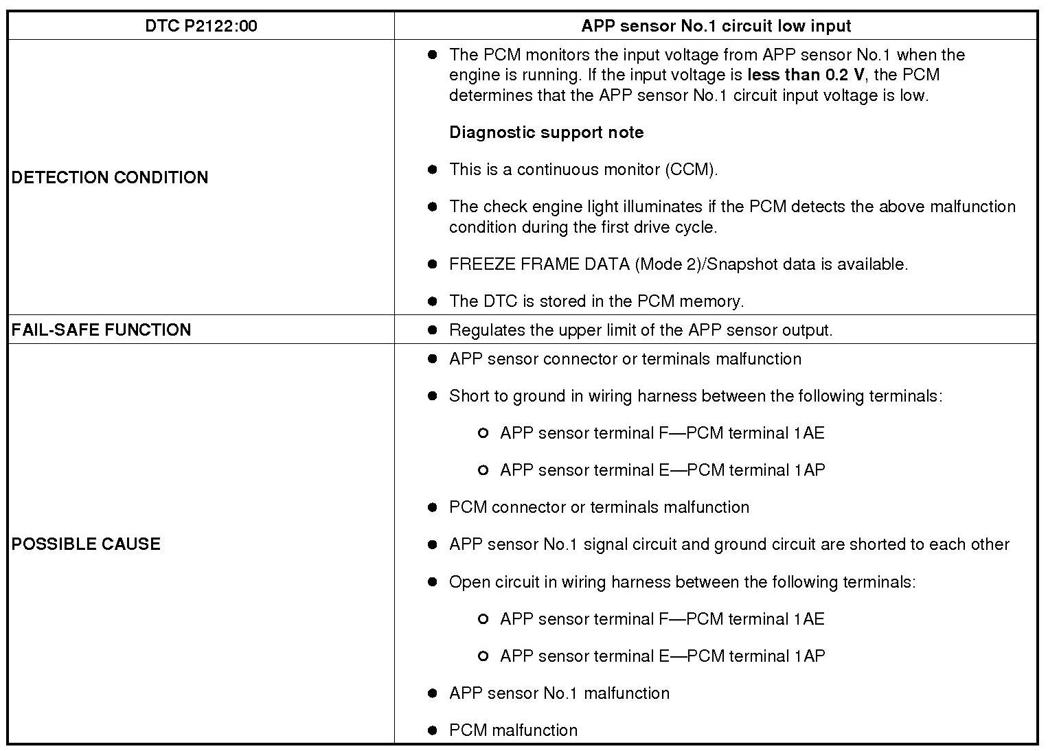 DTC P2122:00 [MZR 2.5]