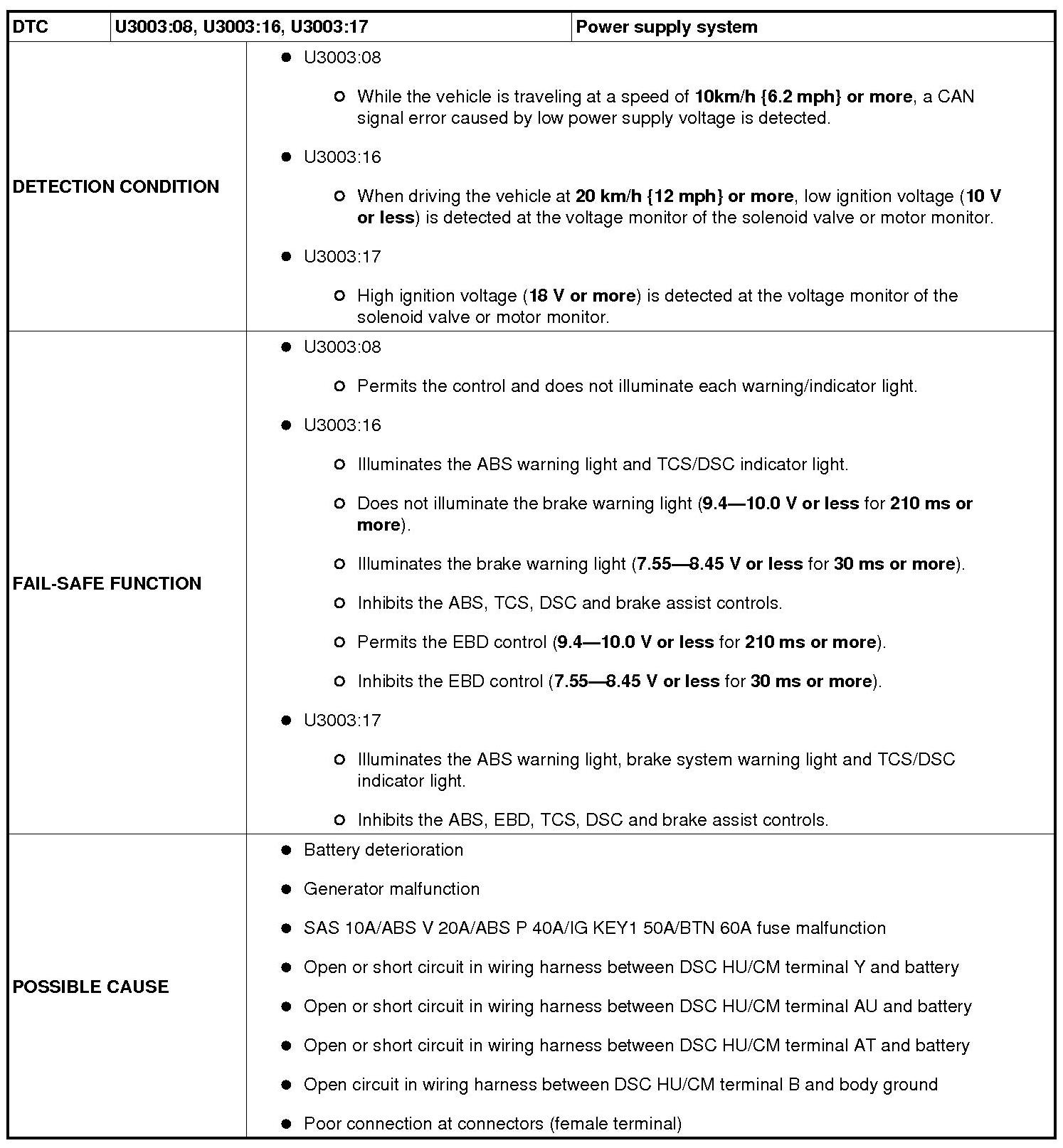 DTC U3003:08 / U3003:16 / U3003:17 [DYNAMIC STABILITY CONTROL (DSC)]