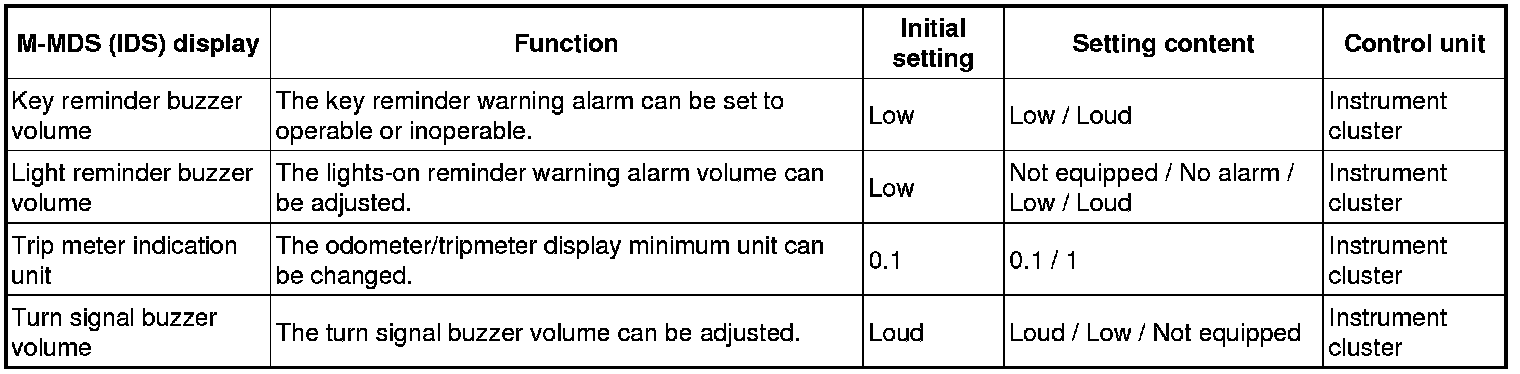 INSTRUMENTATION/DRIVER INFO. PERSONALIZATION FEATURES SETTING PROCEDURE
