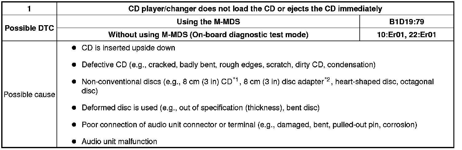 No. 1 CD Player/Changer Does Not Load The CD Or Ejects The CD Immediately