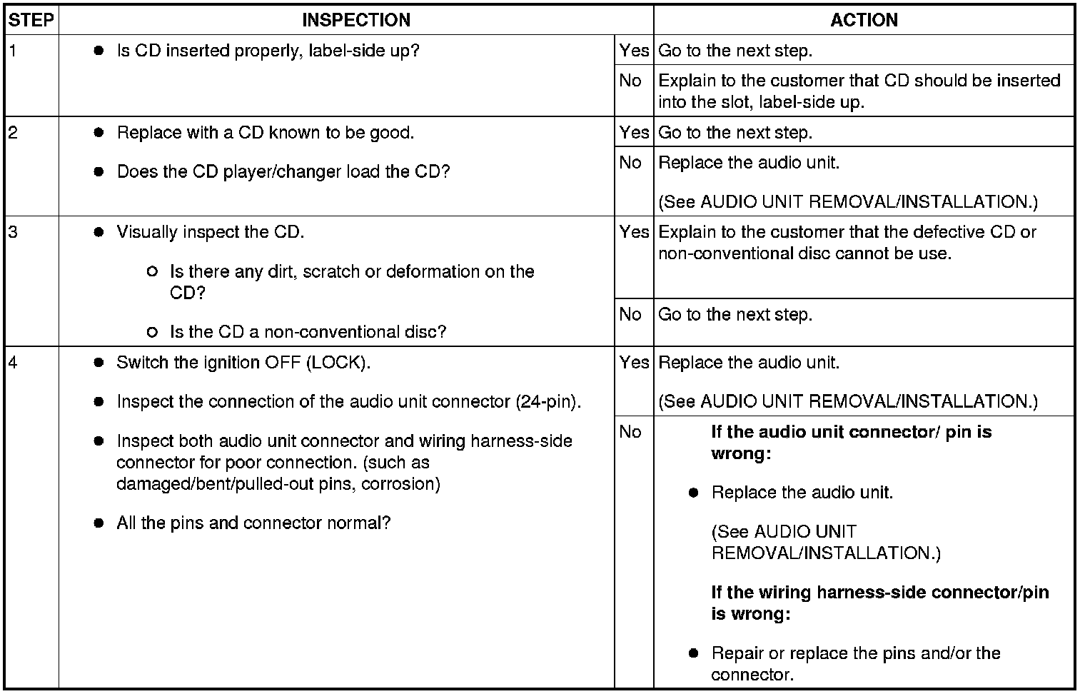 NO.1 CD PLAYER/CHANGER DOES NOT LOAD THE CD OR EJECTS THE CD IMMEDIATELY [CD PLAYER/CHANGER]