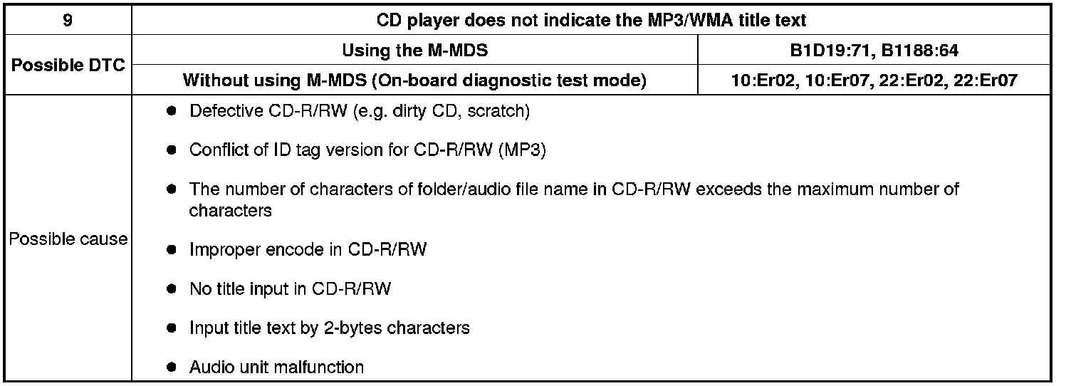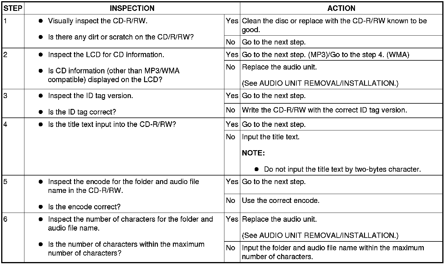NO.9 CD PLAYER DOES NOT INDICATE THE MP3/WMA TITLE TEXT [CD PLAYER/CHANGER]