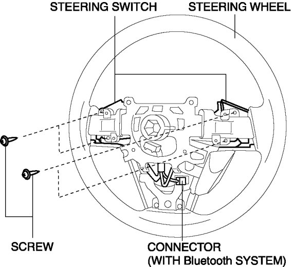 7. Remove the steering cover tabs and pins from the steering wheel.