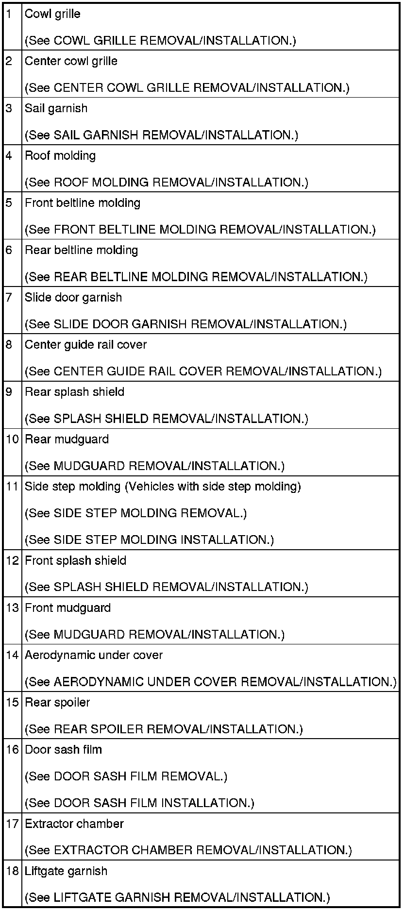 EXTERIOR TRIM LOCATION INDEX
