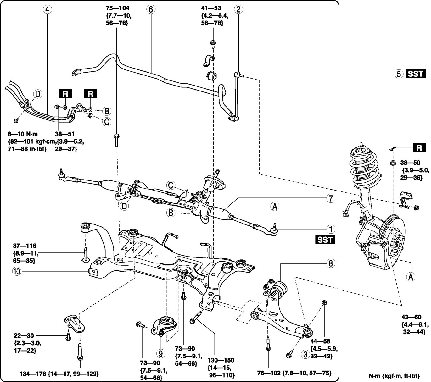 3. Tighten the front crossmember installation bolts and nuts.