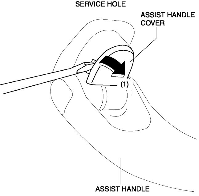 1. Insert a flathead screwdriver into the service hole and remove the assist handle covers in the direction of arrow (1).