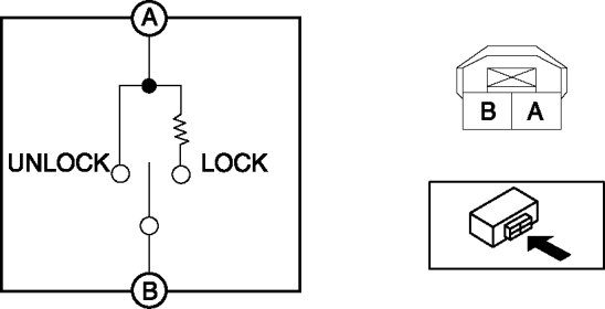 4. Verify that the continuity between the door lock switch terminals is as indicated in the table.