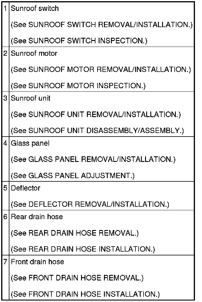 SUNROOF LOCATION INDEX