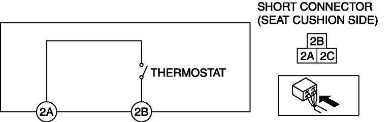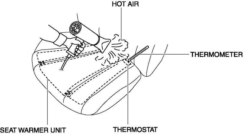 10. While inspecting for voltage of the short connector, use a dryer to warm the thermostat of the seat warmer unit on seat cushion.
