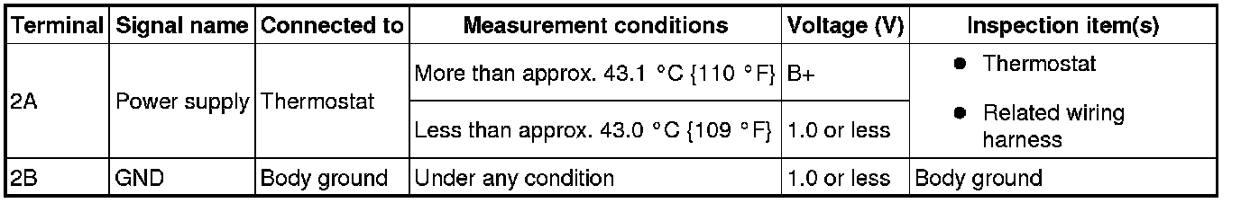 - If not as indicated in the table, replace the seat warmer unit (seat back). Service and Repair