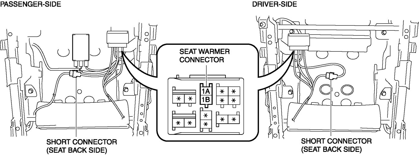 7. Disconnect the seat warmer connector and short connector.