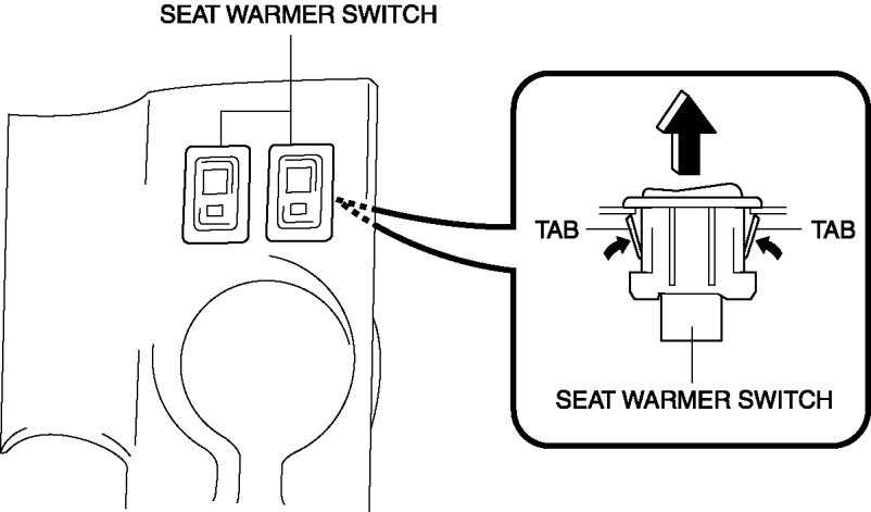 6. Squeeze the tabs of seat warmer switch and pull it outward to remove it.