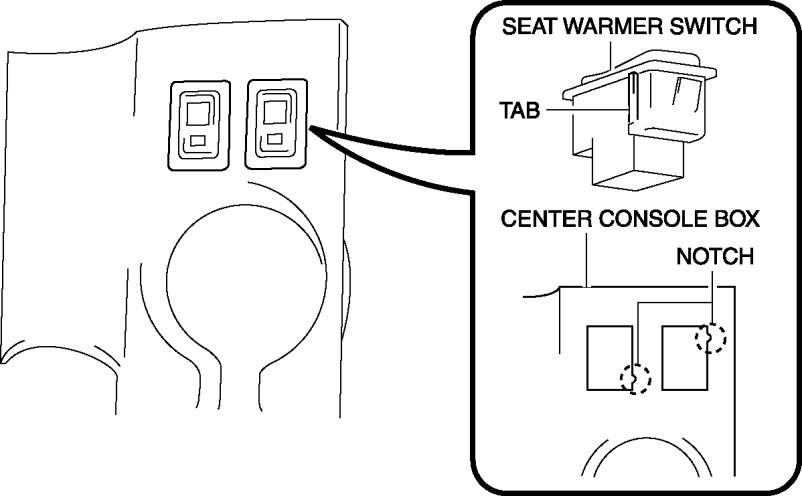 1. Place the seat warmer switch's tab to the notch of center console box.