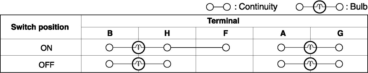 1. Verify that the continuity between the seat warmer switch terminals is as indicated in the table.