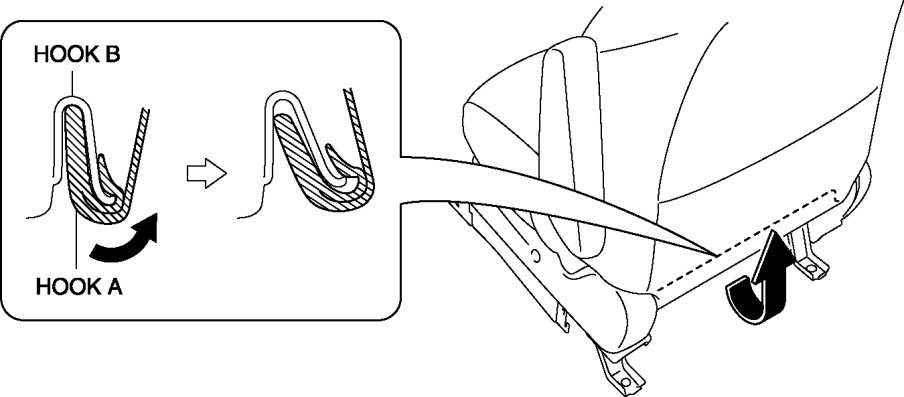 - Be careful not to damage the ring C when removing/installing it. If a damaged ring C is used, it could result in improper installation of the second-row seat cushion trim and the second-row cushion pad.
