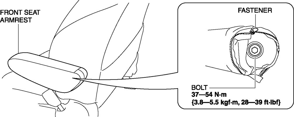 9. Open the fastener and remove the bolt, then remove the front seat armrest.