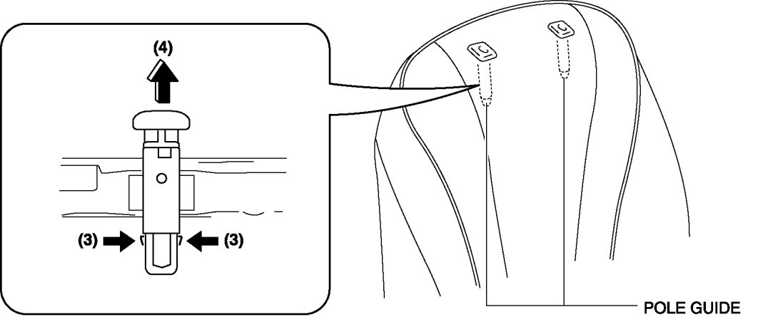 15. Release the pole guide tabs in the direction of arrow (3) shown in the figure, then pull the pole guide out in the direction of arrow (4).