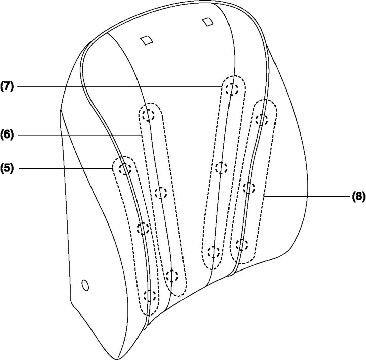 17. Remove the rings C in the order of (5), (6), (7), (8), then remove the front seat back trim from the front seat back pad.