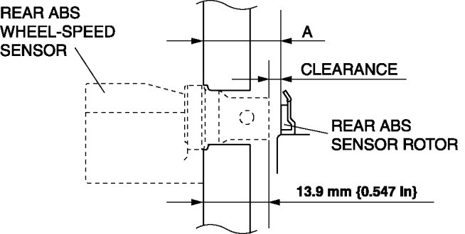 4. Verify that the clearance between the ABS sensor rotor and the rear ABS wheel-speed sensor is as indicated below.