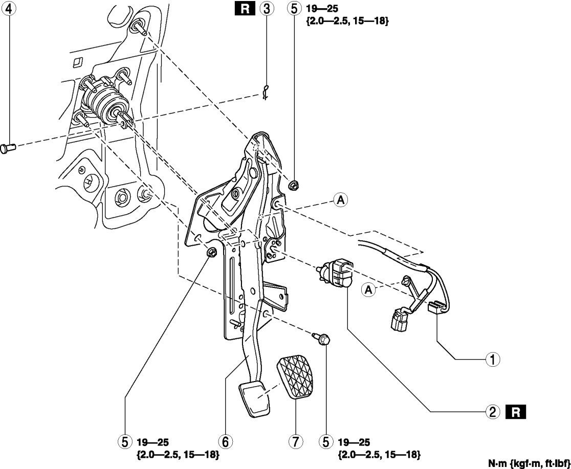 5. Remove the accelerator pedal. Service and Repair