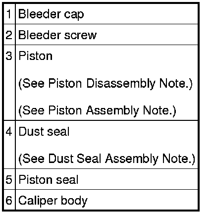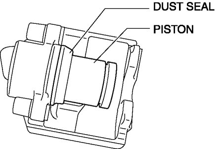 - When blowing compressed air into the caliper body, the piston may pop out and cause injury if not supported at the correct point. Securely support the piston friction surface by hand when blowing compressed air.