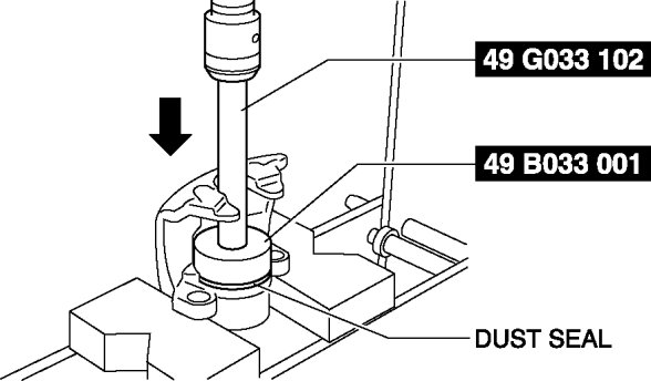1. Assemble a new dust seal to the caliper using the SSTs and a press with a press-in force of 834 N {85 kgf, 187 in-lbf}.