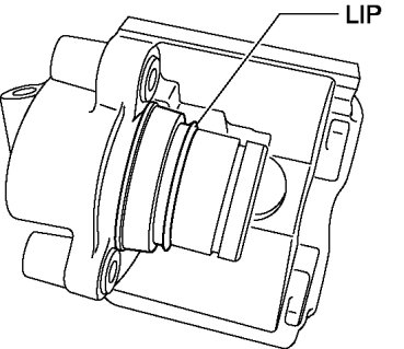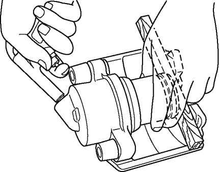 - When compressed air is blown into the caliper body, injury to a finger or other part from pinching could result from the piston springing up. When blowing in compressed air, do not place your fingers between the piston and caliper body when performing the work.