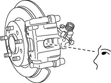 4. Replace the pads as a set (right and left wheels) if either one is at or less than the minimum thickness.