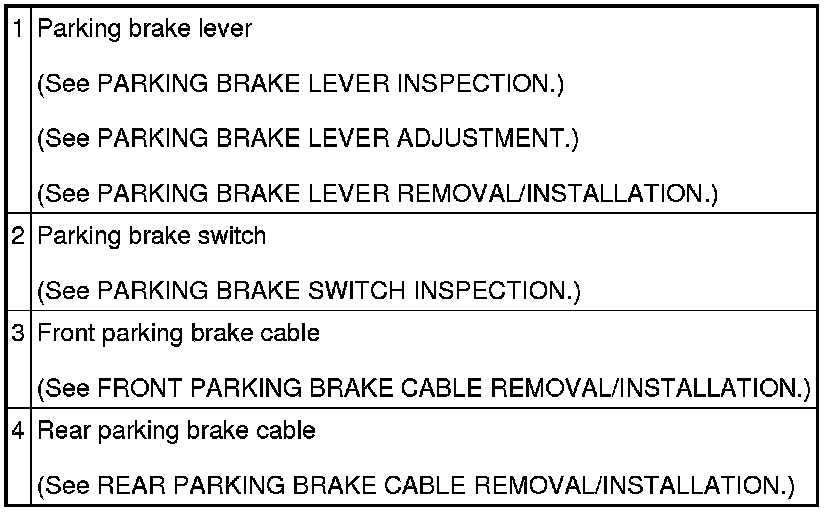 PARKING BRAKE SYSTEM LOCATION INDEX
