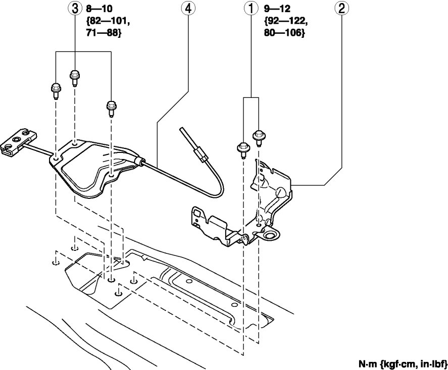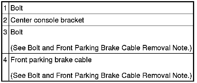 Bolt and Front Parking Brake Cable Removal Note