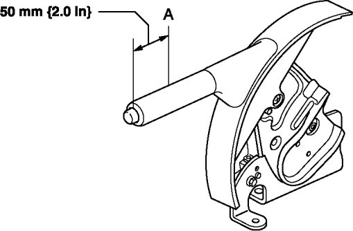 3. Inspect the parking brake stroke by slowly pulling at point A 50 mm {2.0 in} from the end of the parking brake lever with a force of 98 N {10 kgf, 22 lbf} and counting the number of notches (clicking sound).