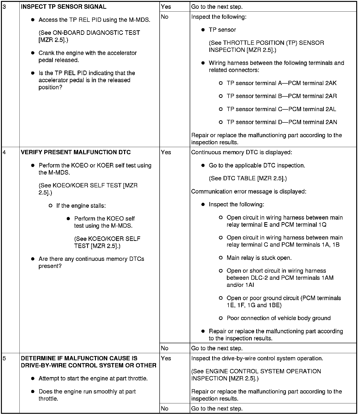 NO.5 ENGINE STALLS-AFTER START/AT IDLE [MZR 2.5]