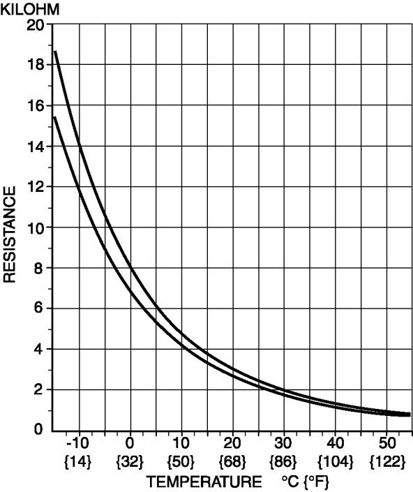 - If the characteristics of the passenger compartment temperature sensor are not as shown in the graph, replace the passenger compartment temperature sensor.