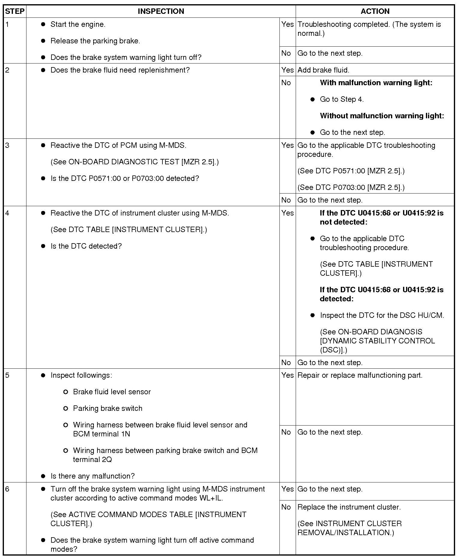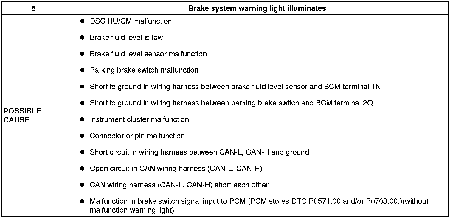 NO. 5 BRAKE SYSTEM WARNING LIGHT ILLUMINATES [INSTRUMENT CLUSTER]