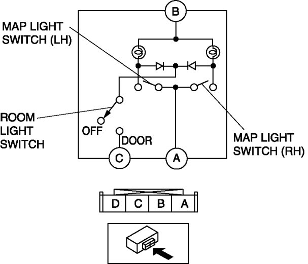 4. Apply battery positive voltage to map light terminal B, and connect terminal C to ground.