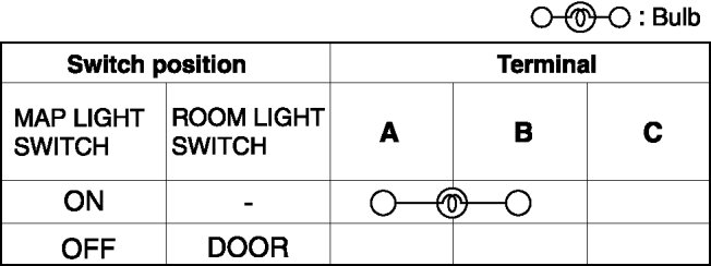 3. Verify that the continuity between the map light terminals is as indicated in the table.