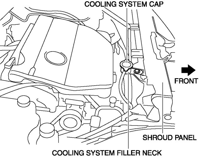 8. Refill the engine coolant from the cooling system filler neck until it is close to the top of the cooling system filler neck.