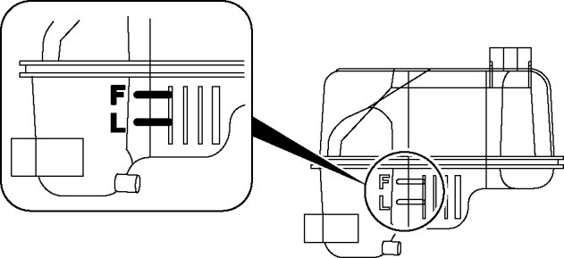 3. Verify that the engine coolant level in the coolant reserve tank is between the F and L marks.