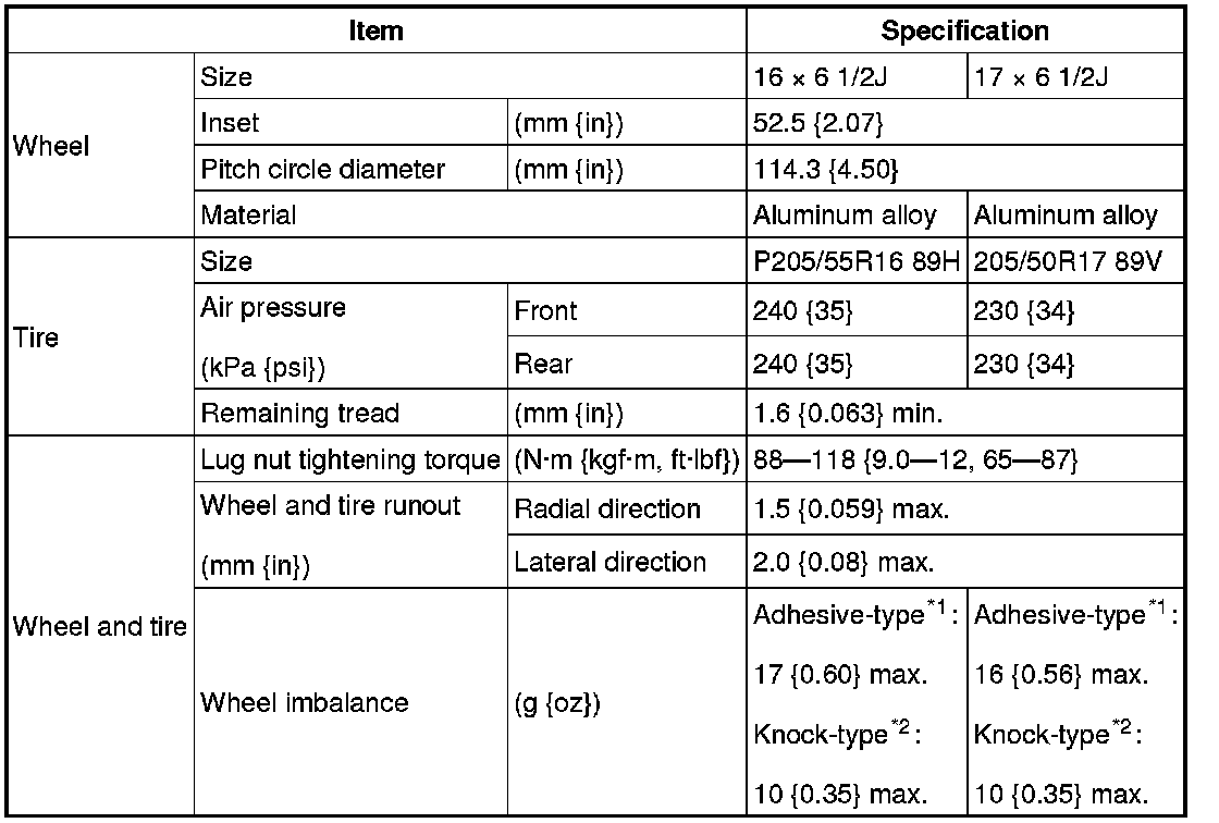 One balance weight: 60 g {2.1 oz} max. If the total weight exceeds 100 g {3.53 oz} on one side, rebalance after moving the tire around on the rim. Do not use three or more balance weights.