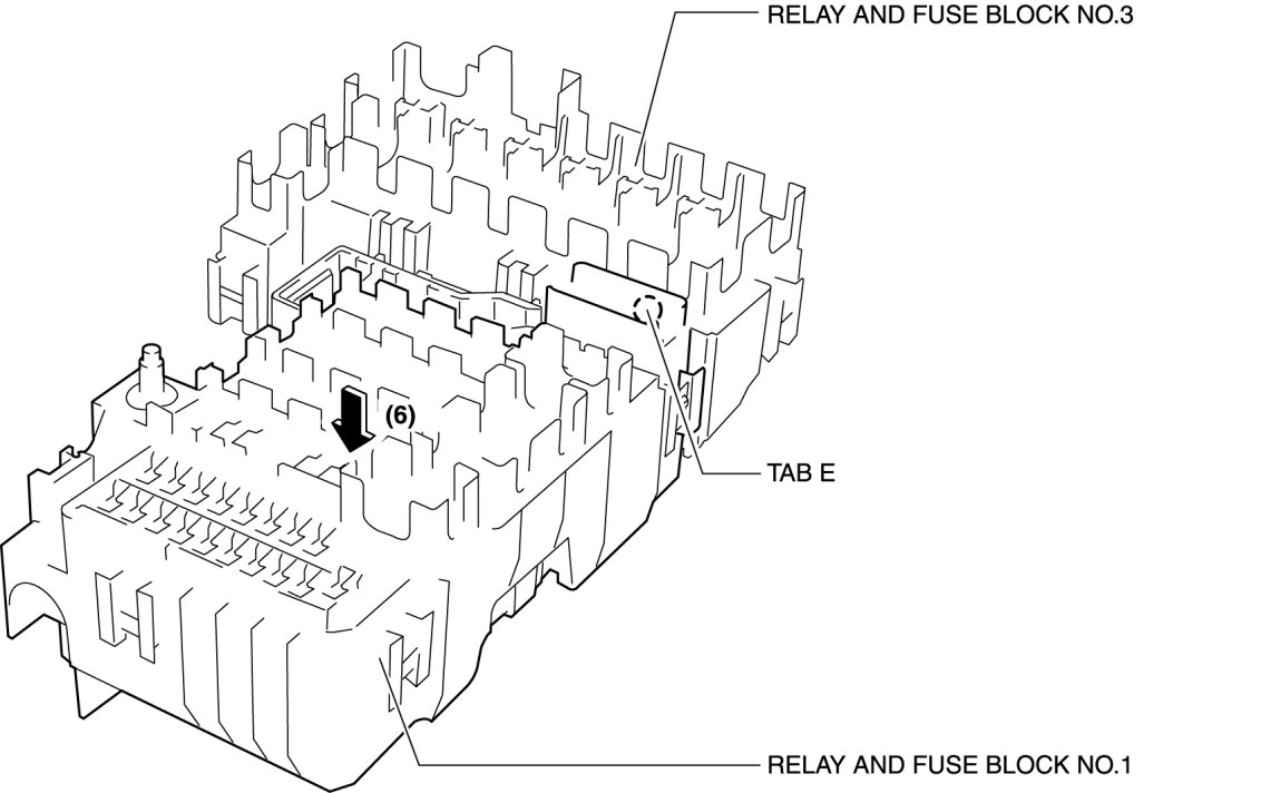 - This procedure is performed for relay and fuse blocks No.1, 2, and 3.
